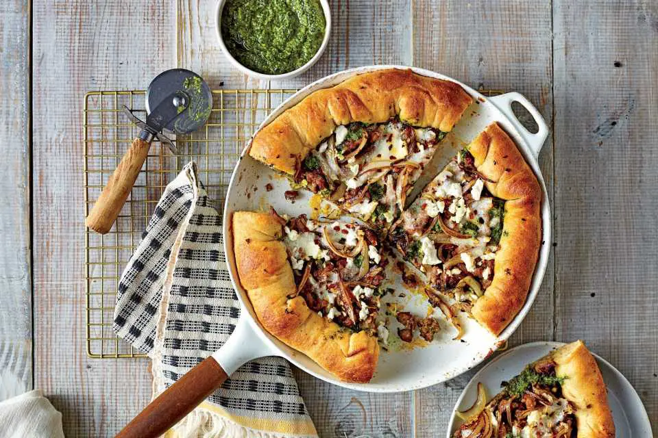 Indian style pizza using makhni gravy and tikka-style paneer.