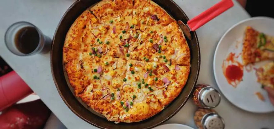 It is made using pizza base, sauce, mozzarella cheese, corns and mixed herbs.